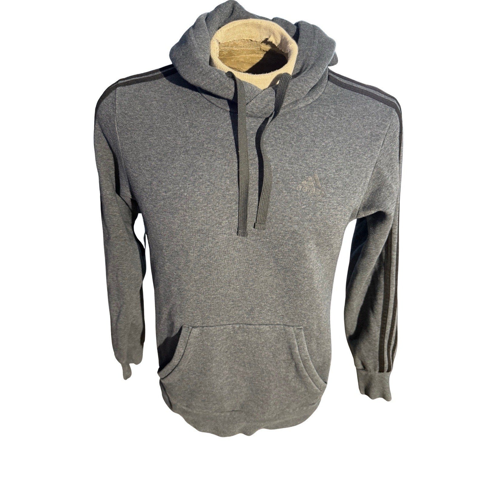 Adidas Gray Hoodie Pullover 3-Stripes Kangaroo Pocket Sweatshirt Men’s Medium