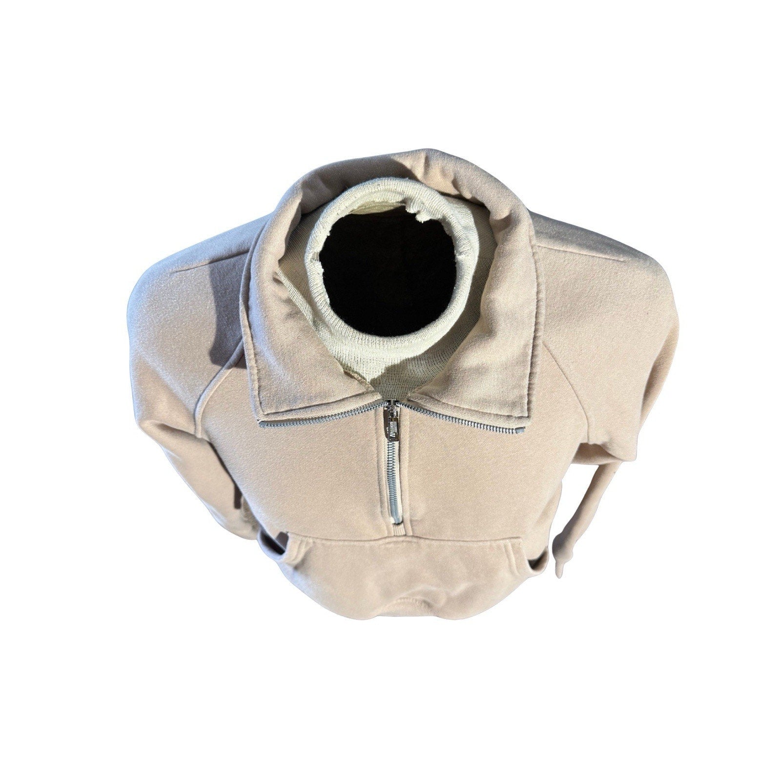 Automet women’s half-zip pullover sweatshirt in soft beige with a cozy sherpa fleece lining. Features a high mock-neck collar, metal zipper, and front kangaroo pocket for warmth and style. Crafted from plush fleece material with ribbed cuffs and hem for a snug fit.