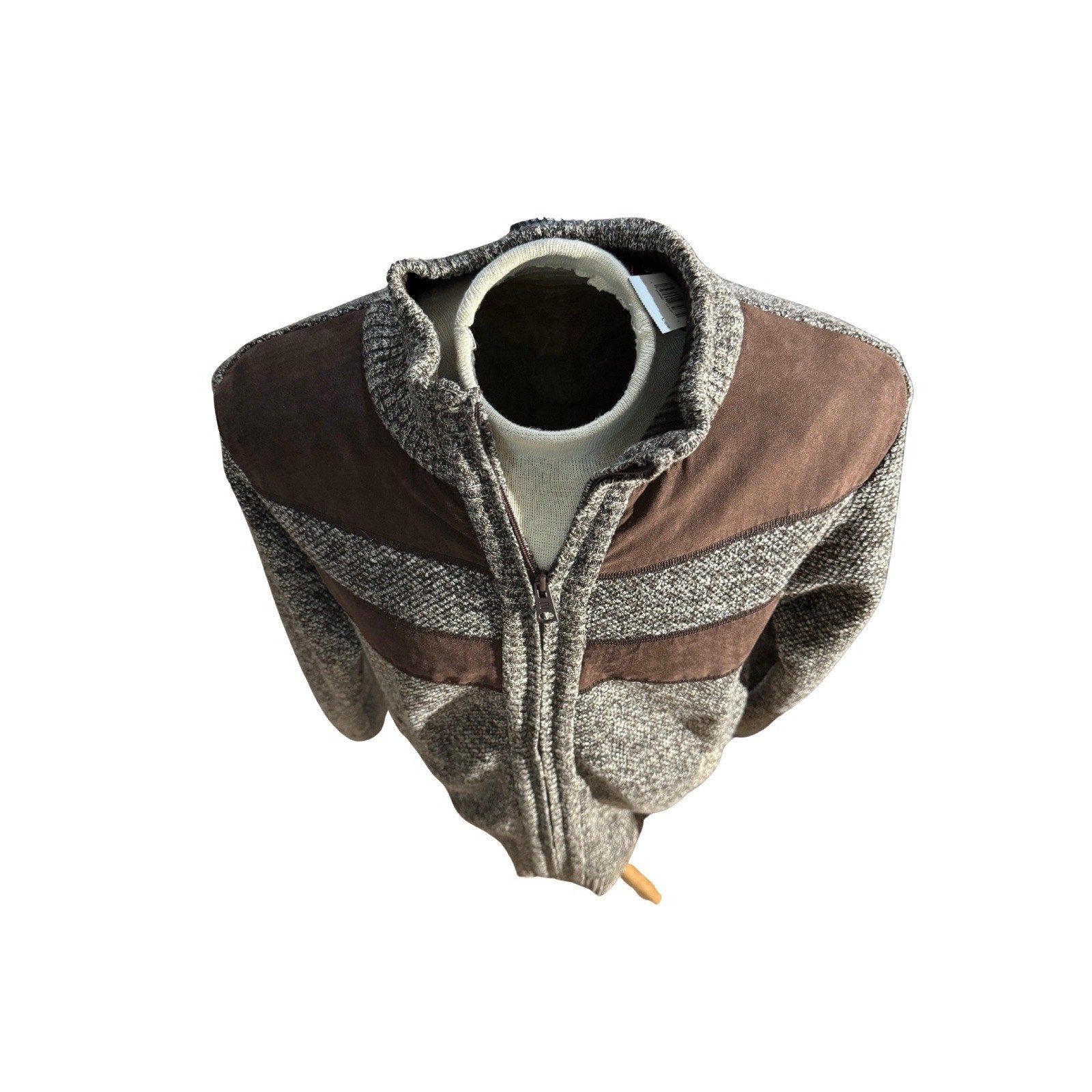 Buffalo David Bitton Men’s Knit Sweater Jacket L Brown Full Zip Faux Suede