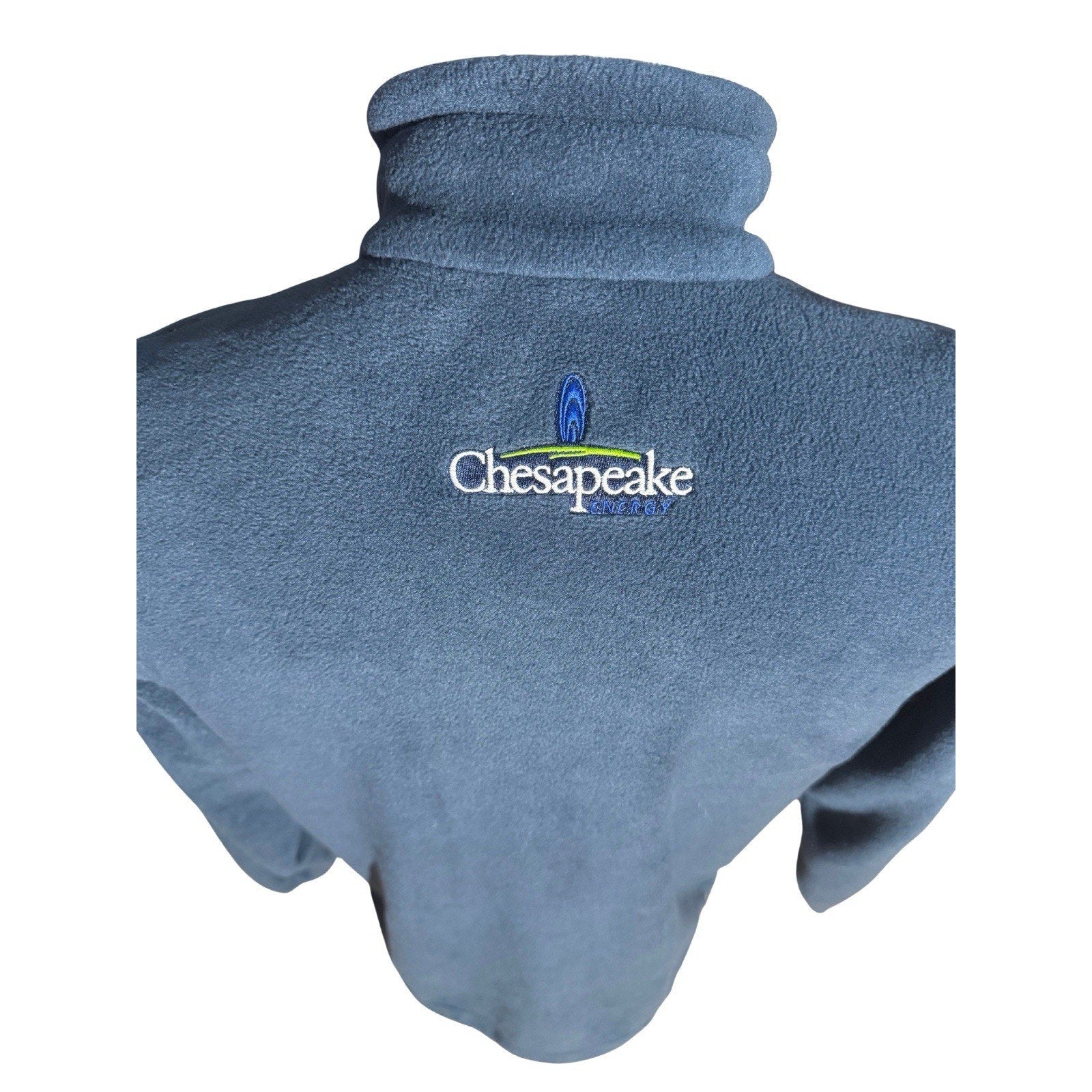 Authentic Columbia Sportswear fleece jacket featuring the Oklahoma City Thunder and Chesapeake Energy embroidered logos. Originally produced as a limited corporate partnership issue during Chesapeake’s arena sponsorship era, this piece was never sold at retail. Made from Columbia’s soft 100% polyester fleece (style 210SM6113) in Lake Blue, it features full-zip front, stand collar, and dual side pockets. Logos are clean and crisp, showing minimal signs of wear.