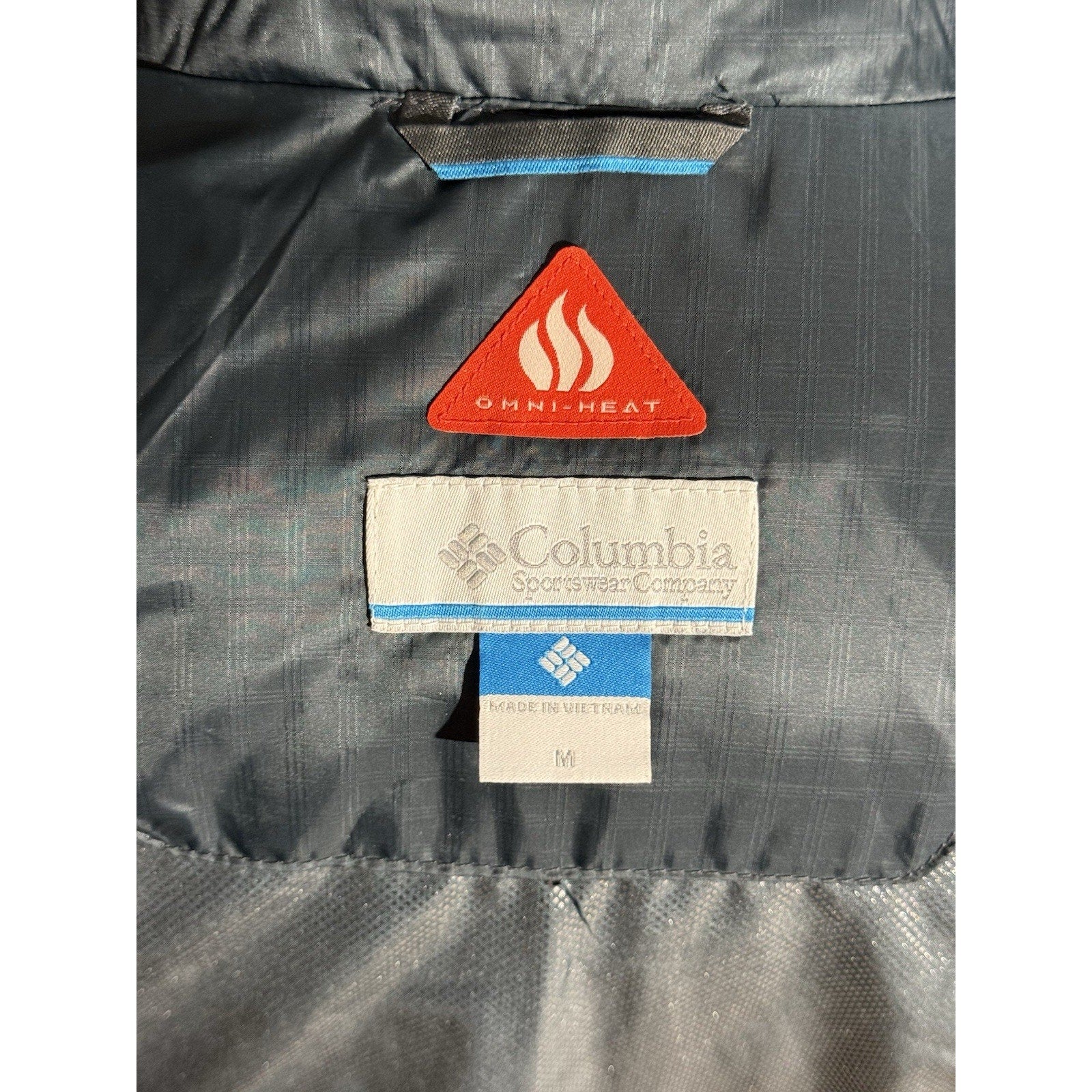 Columbia Sportswear women’s insulated puffer vest in metallic slate blue, size Medium. Features Omni-Heat reflective lining for superior warmth without bulk. Chevron quilted pattern, full front zip closure, and zippered side pockets. Lightweight, packable, and ideal for layering in cold weather or transitional seasons.