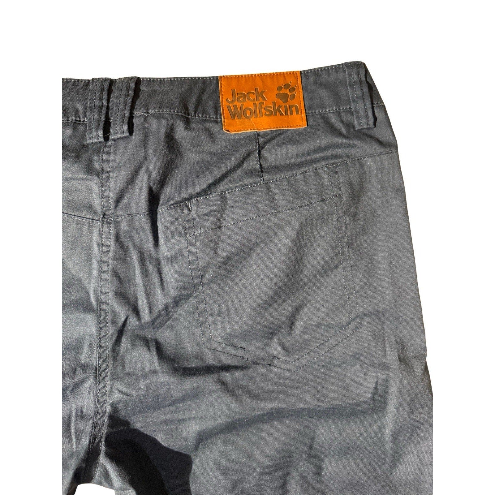 These are Jack Wolfskin Women’s Function 65 Shorts, size US Medium / EU 40 / 30–31 waist, made in Indonesia. The “Function 65” tag refers to Jack Wolfskin’s proprietary cotton-polyamide hybrid fabric, known for being breathable, durable, and quick-drying — designed for active outdoor wear while maintaining a clean, casual style. The leather patch and structured hem give them a polished edge compared to typical hiking shorts.