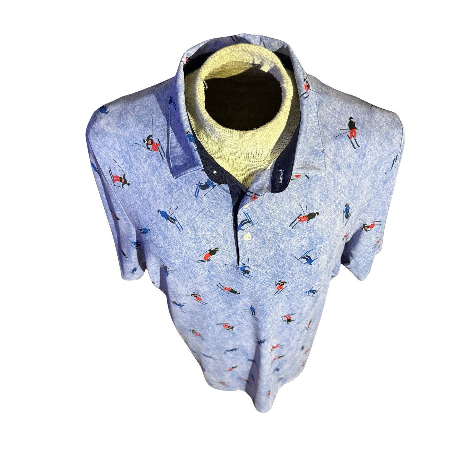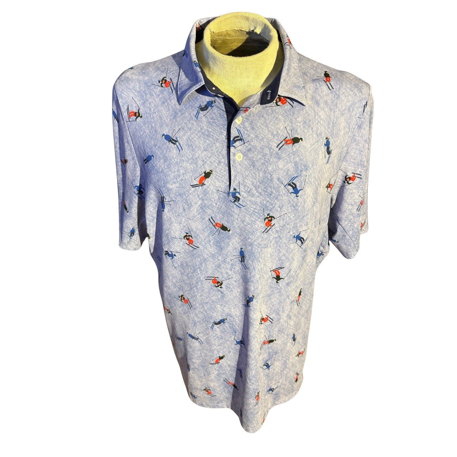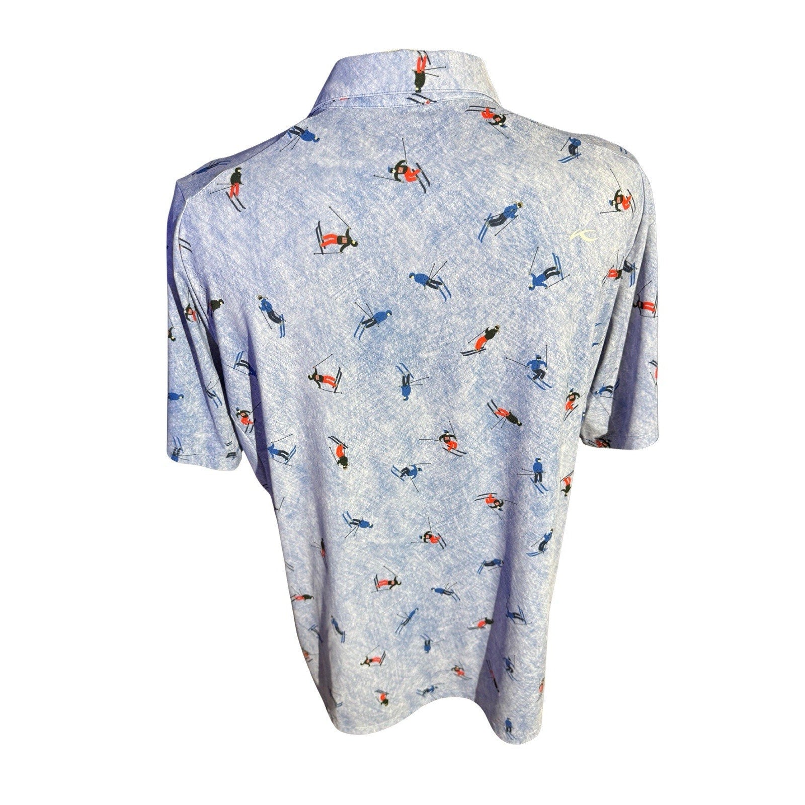 KJUS Men’s Golf Polo Shirt XL Blue Ski Print Performance UPF 50+ NWT