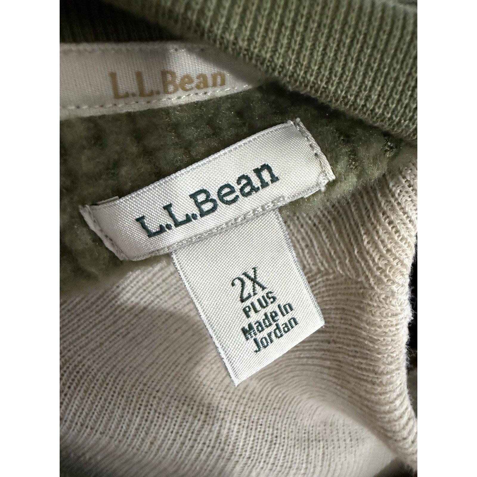 L.L. Bean Women’s 2X Plus Waffle Knit Crewneck Sweater Olive Green Zip Hem