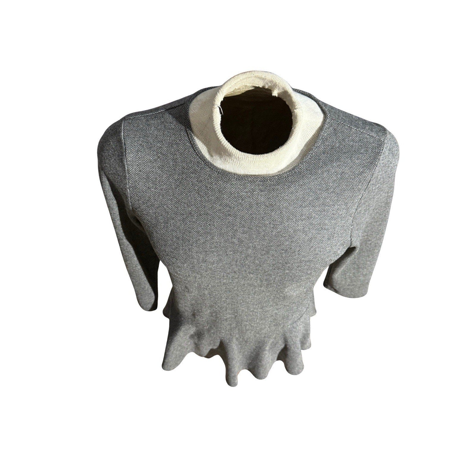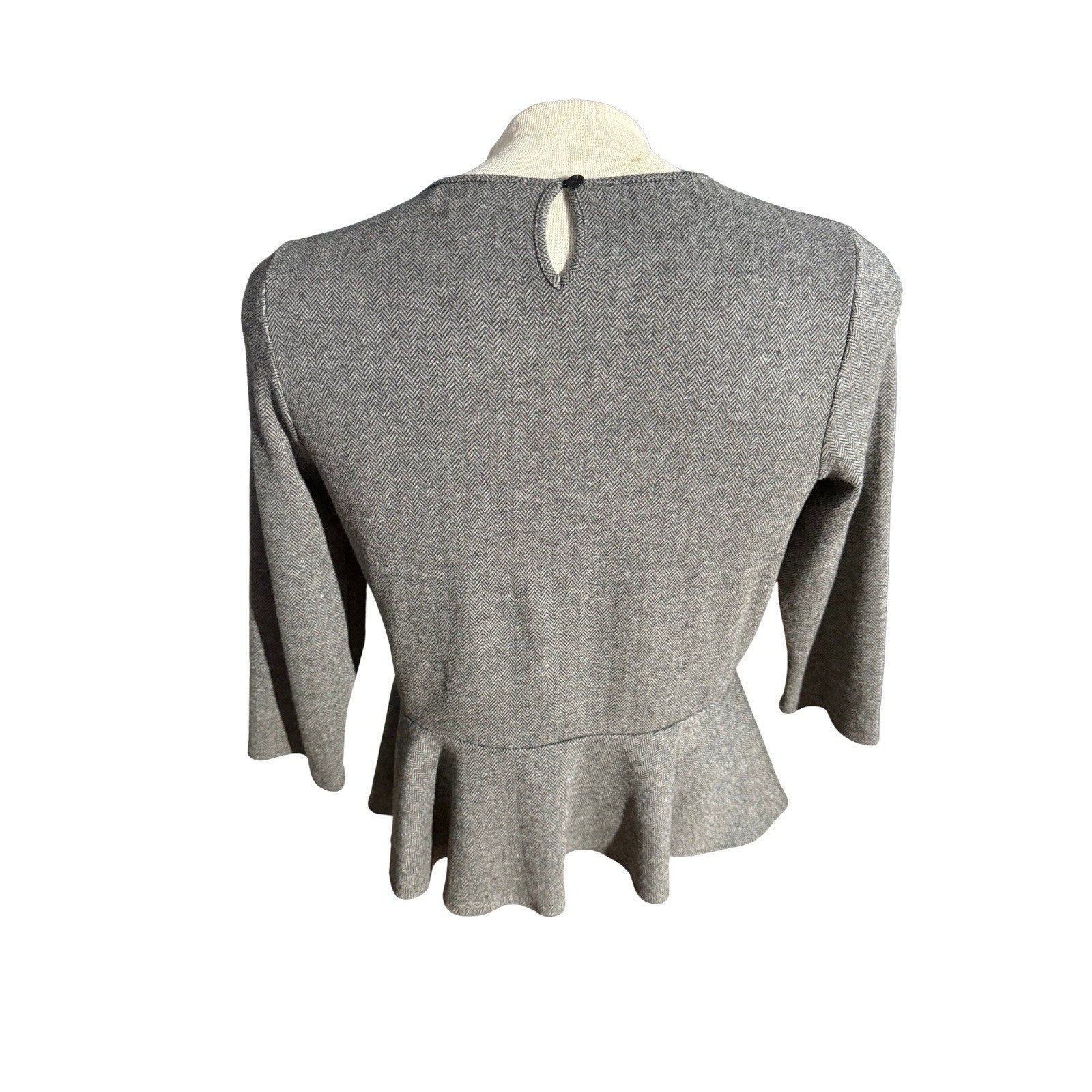Lauren Ralph Lauren Gray Herringbone Peplum Top Women’s L 3/4 Sleeve Stretch