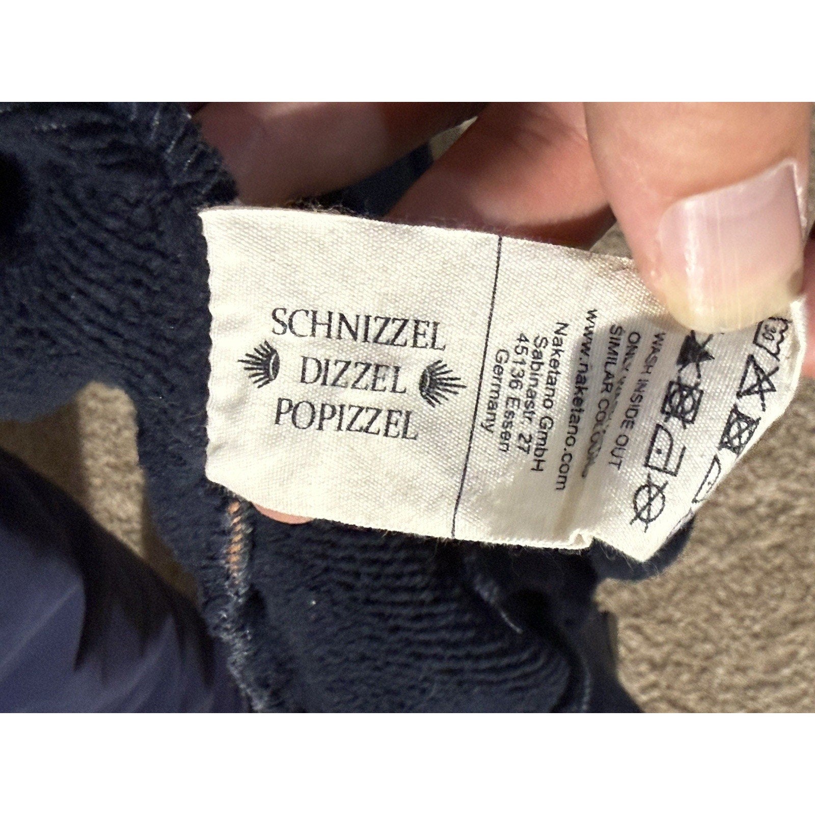 Rare Naketano “The Poet’s Choice” hoodie in slate gray — iconic German streetwear brand known for its premium fabrics and distinctive design details. Features an asymmetrical full zip, oversized funnel collar with thick rope drawstrings, faux leather trim accents, and anchor logo patch at sleeve. Soft cotton-blend interior (65% cotton / 35% polyester) offers exceptional comfort and warmth. Men’s size Medium. Style name: Schnizzel Dizzel Popizzel. Made in Germany.