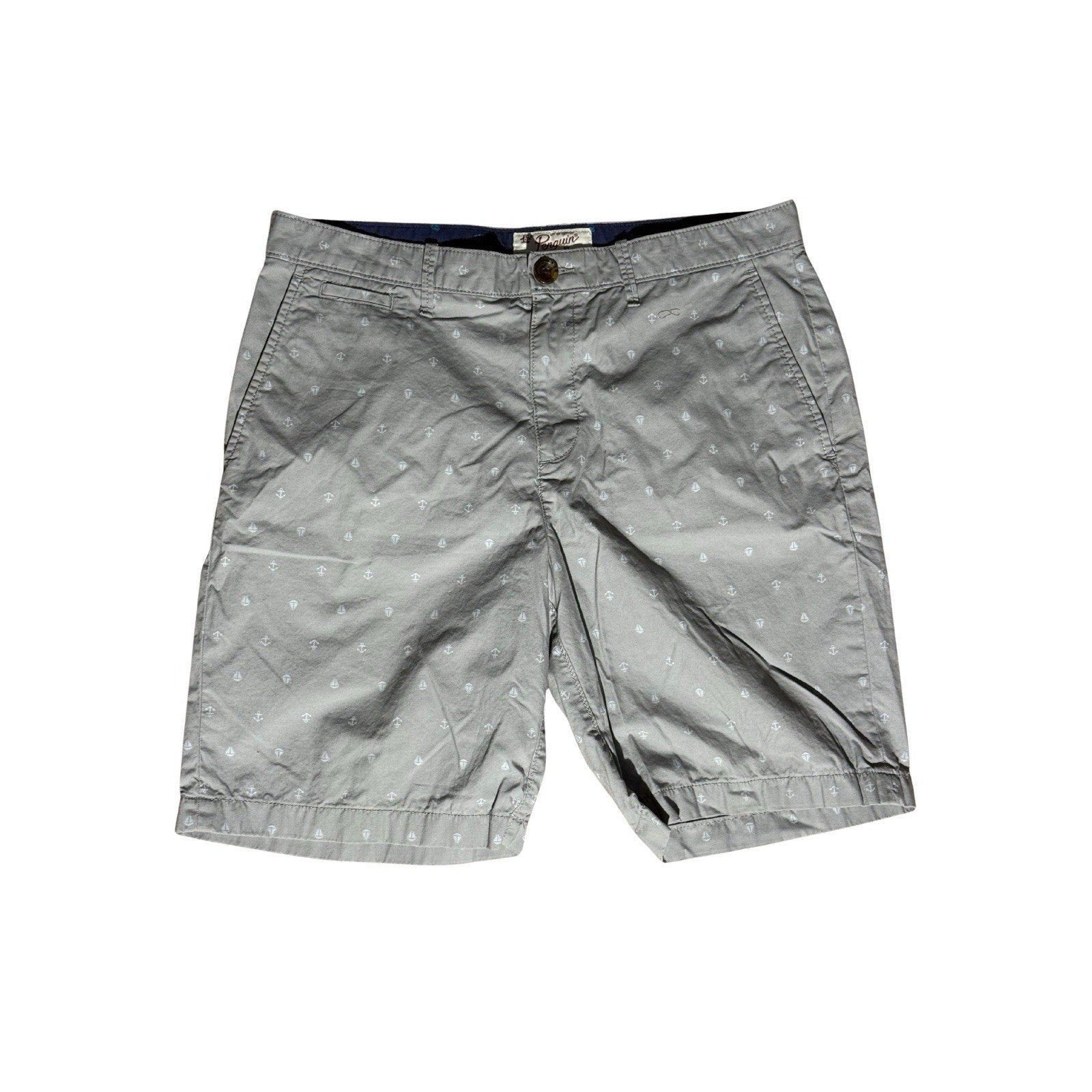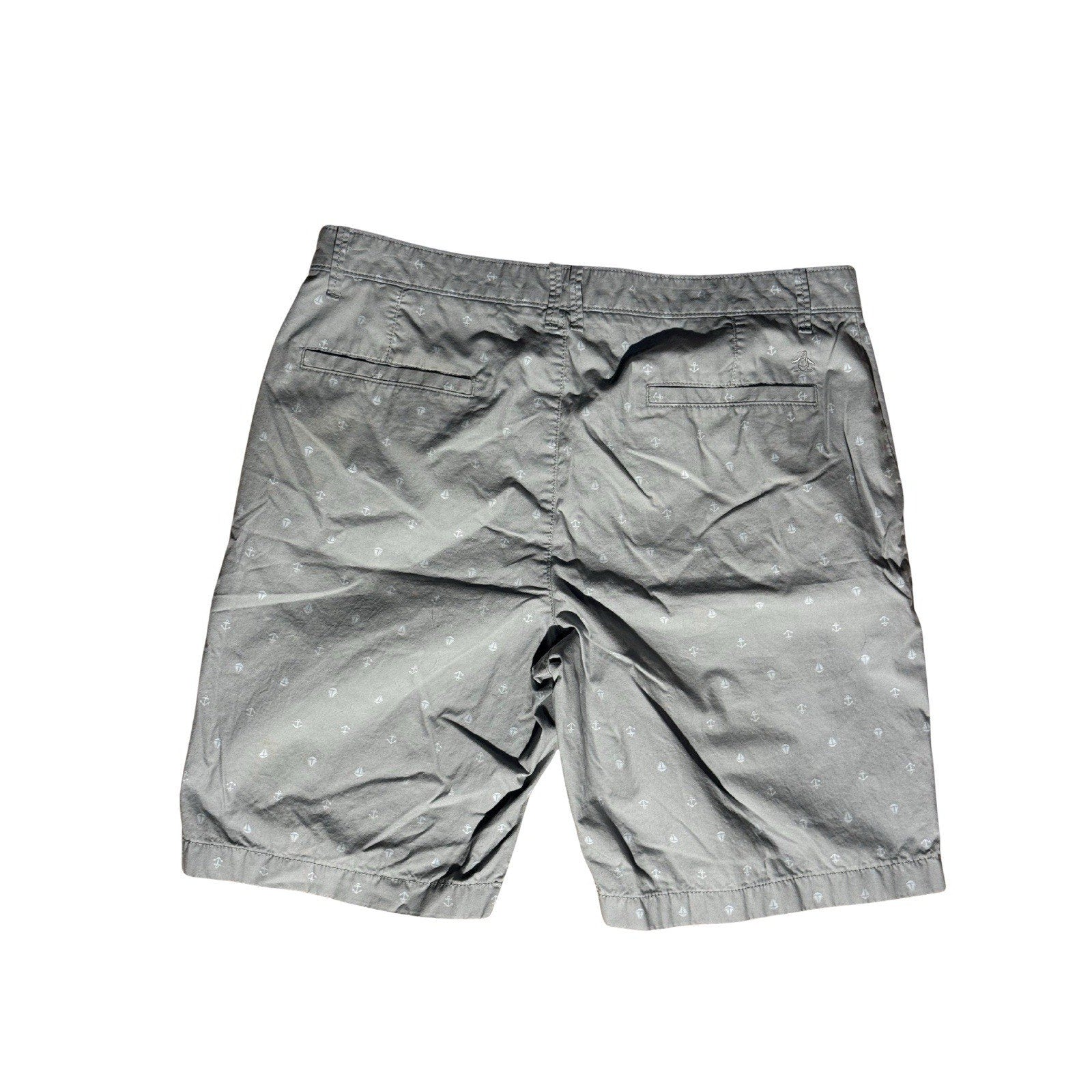 Original Penguin Men’s Anchor Print Shorts Gray 34 Chino Casual Nautical Summer