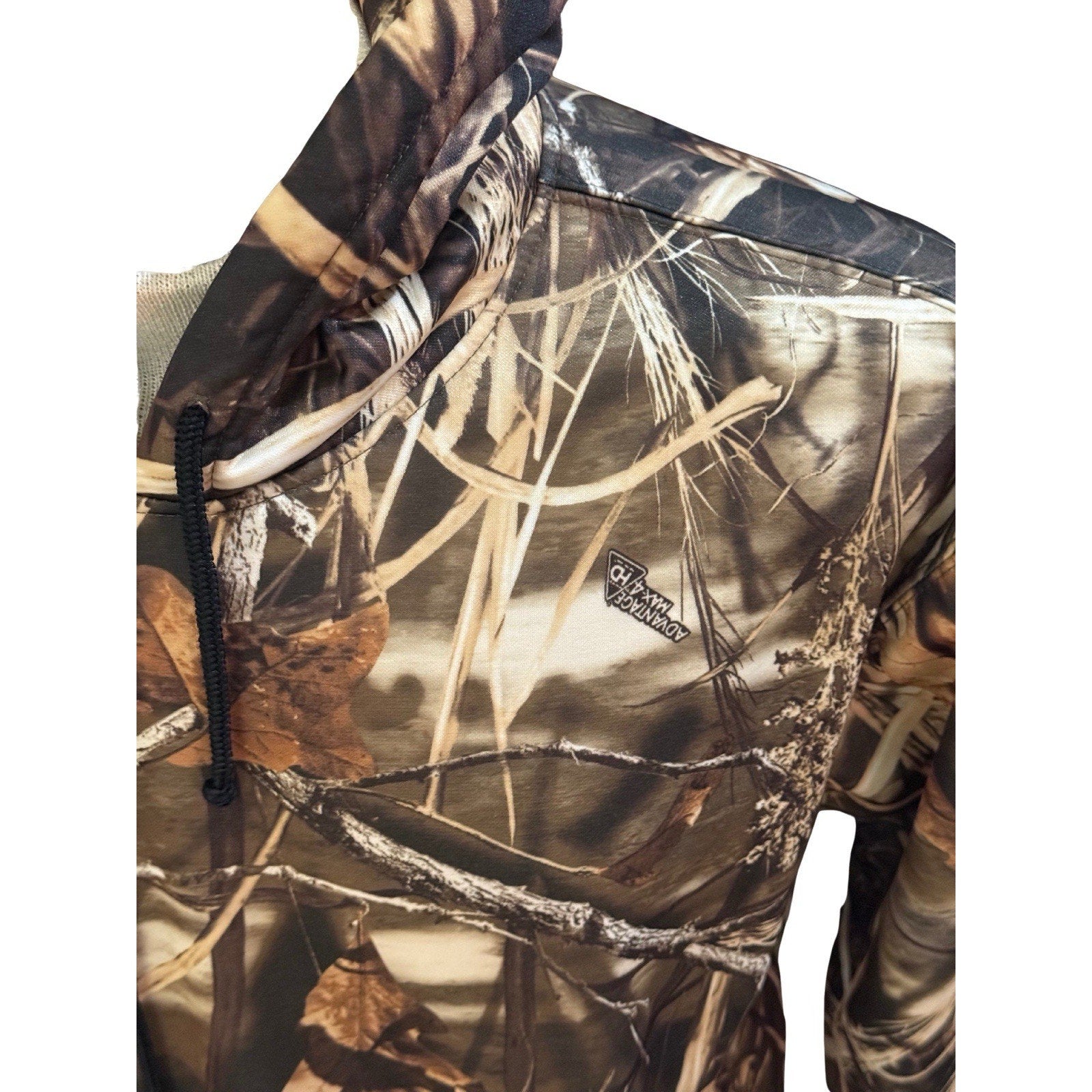 Authentic RedHead camouflage hoodie in the Realtree Max-7 pattern — a favorite among hunters and outdoor enthusiasts. Features a soft fleece lining for warmth, drawstring hood, and front kangaroo pocket. Lightweight yet insulating, ideal for layering during cool mornings or cold-weather hunts. Durable polyester-spandex blend for comfort and mobility.