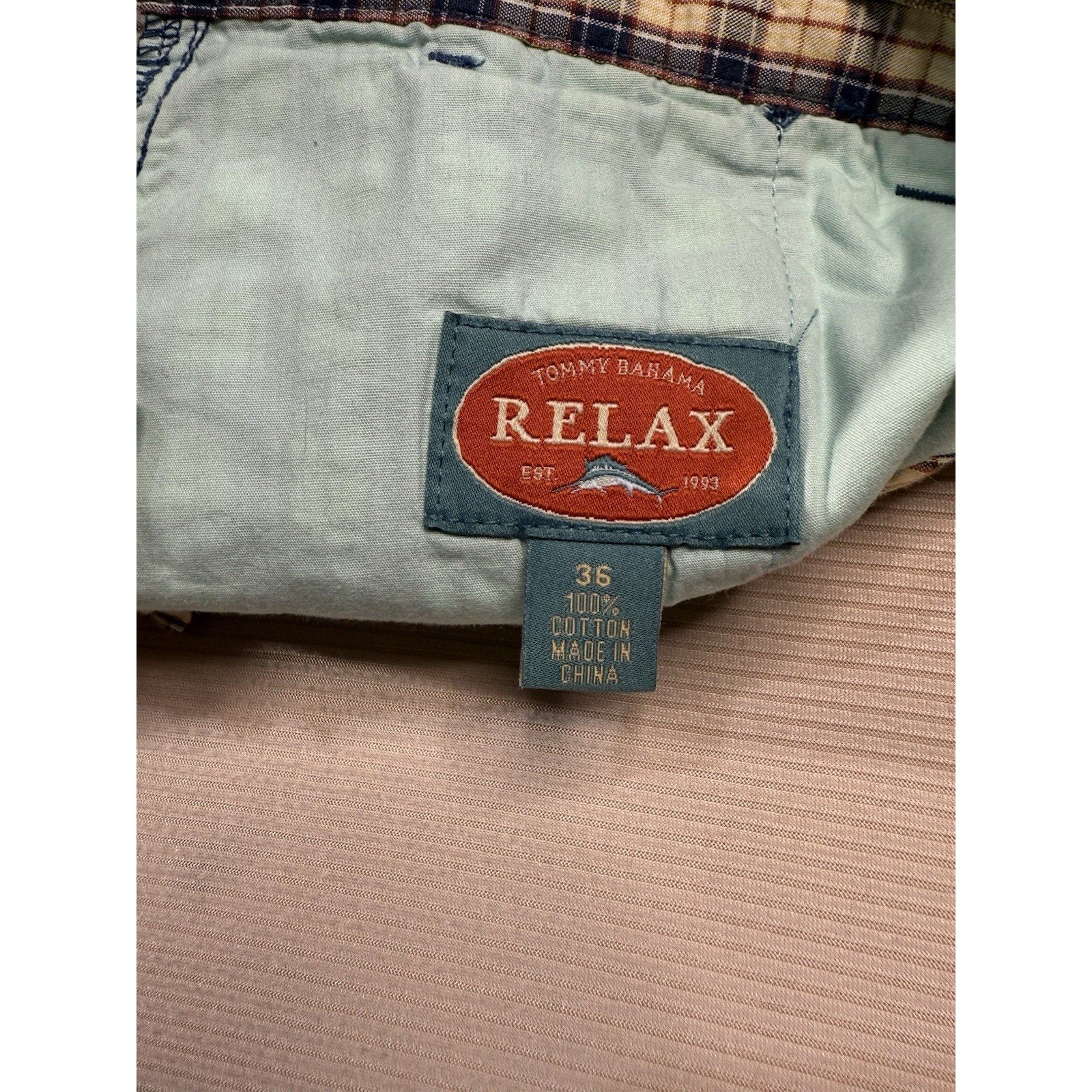 Tommy Bahama Relax 36 Blue Tan Plaid 100% Cotton Shorts Casual Island Wear