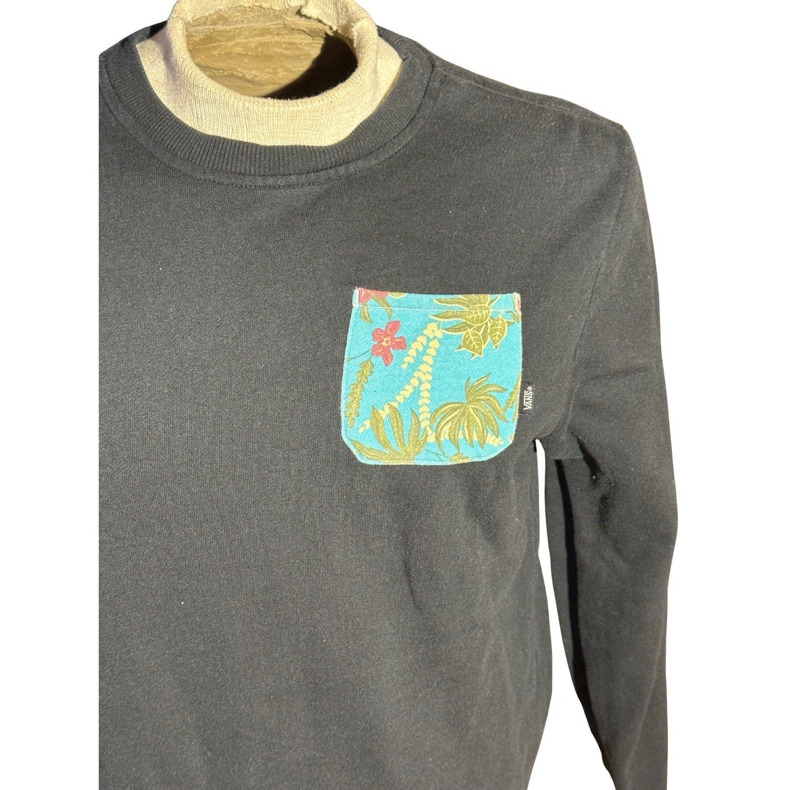 Vans Men’s Medium Black Crewneck Sweatshirt Floral Pocket Long Sleeve Pullover