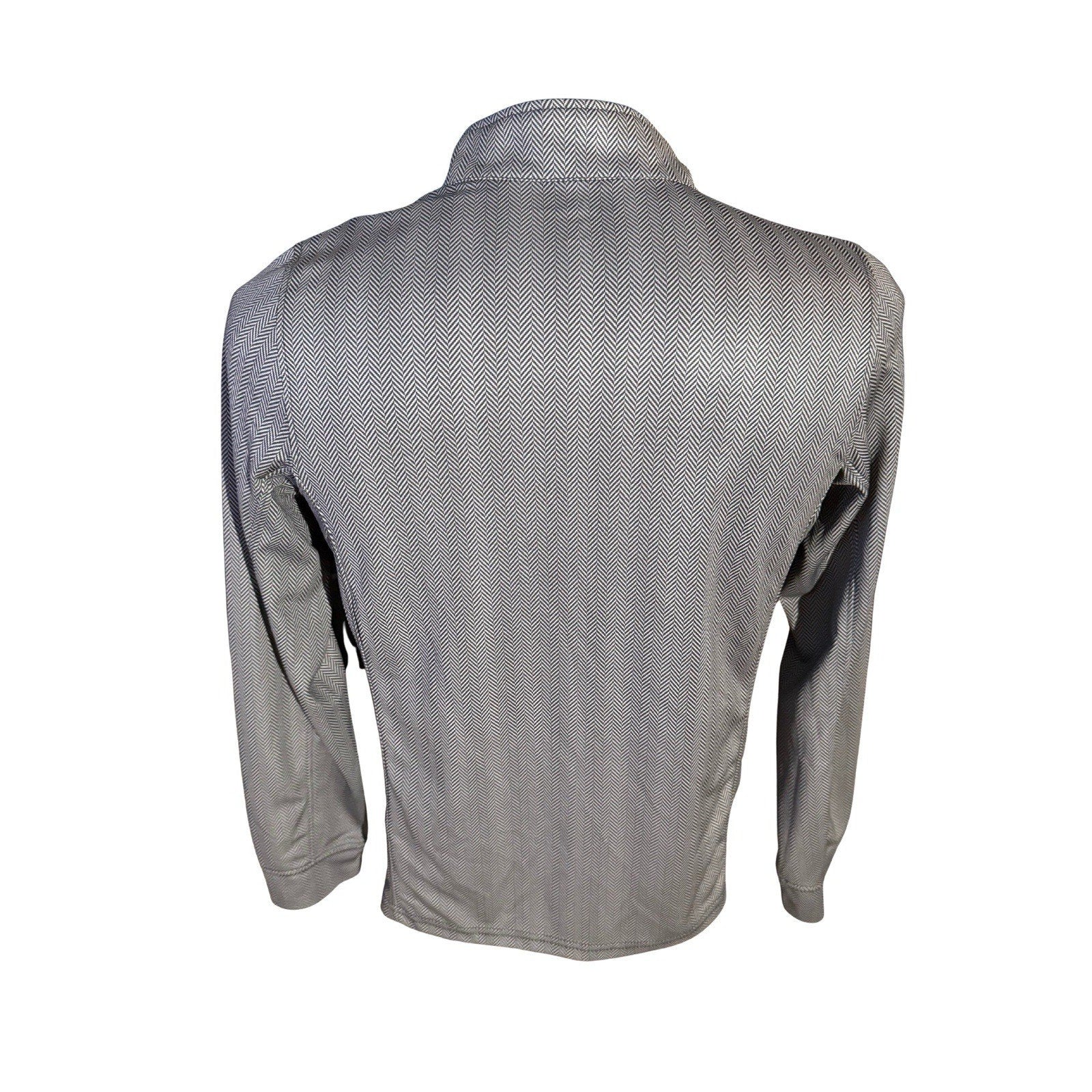 Vansport women’s performance full-zip jacket in size Medium. Features a sleek black herringbone pattern, embroidered USA horse-and-flag logo on the chest, and lightweight stretch polyester fabric for comfort. Designed with Vansport performance technology for moisture-wicking, antimicrobial protection, and easy care. Perfect for casual wear, travel, or layering in athletic and outdoor settings.