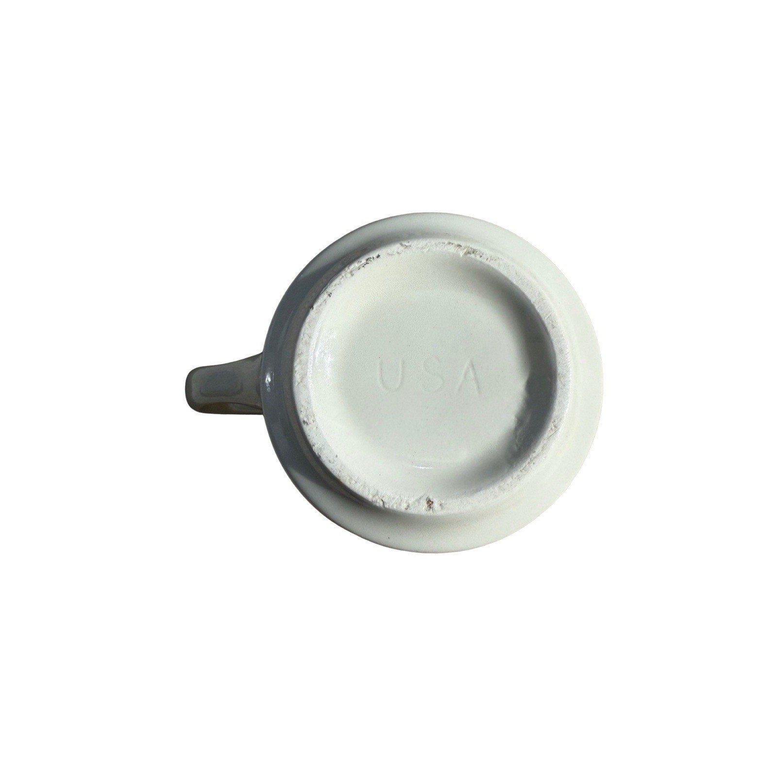 The mug features the embossed “USA” mark on the base, confirming domestic manufacture during a period when many restaurant chains still commissioned custom American ceramic ware. It has the dense, heavy feel typical of mid-century diner stoneware, built for decades of use.