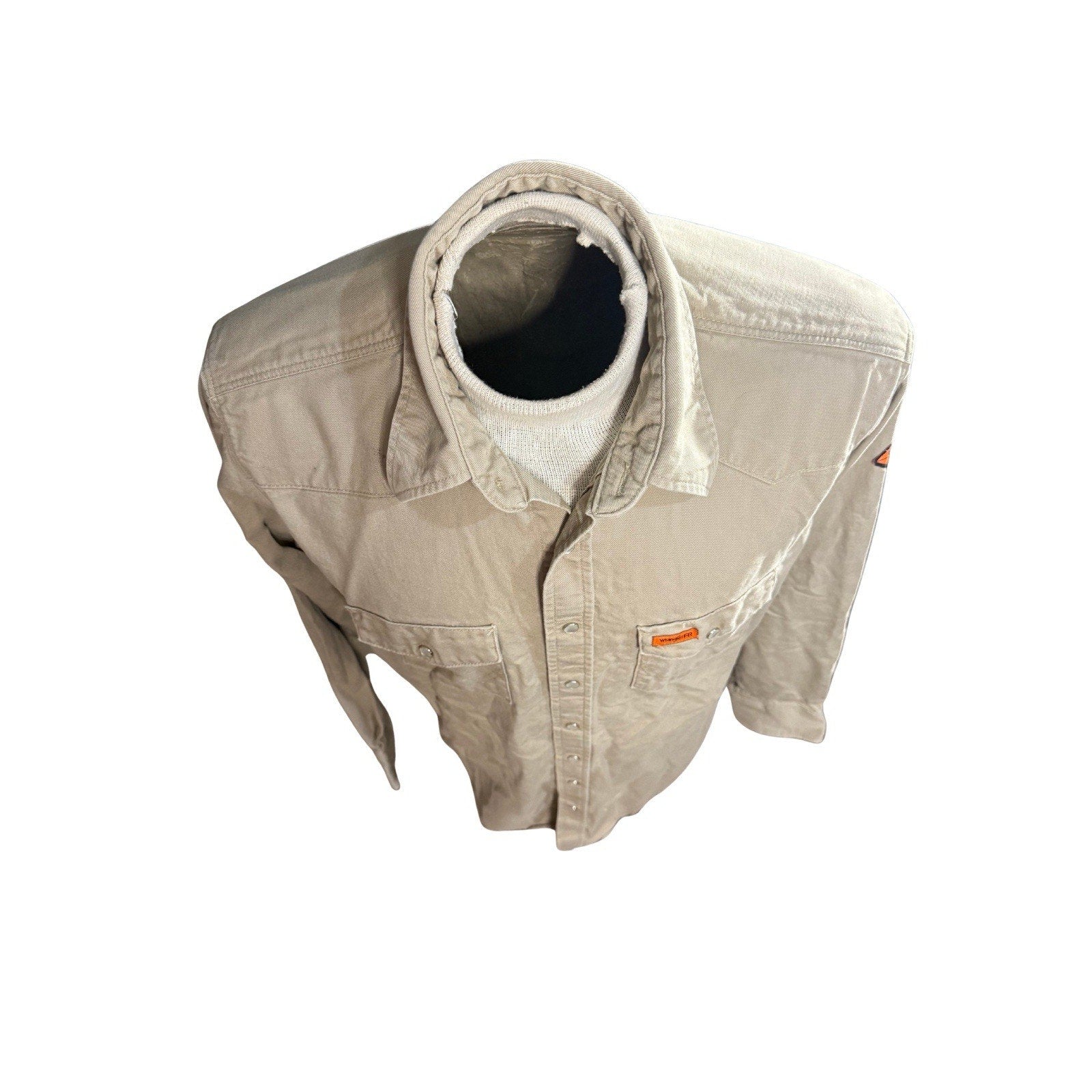 Wrangler FR Flame Resistant Work Shirt Men’s L Tall Beige Snap Front HRC2 2112